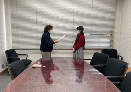 卒業までに最も多く本を借りた学生に表彰状と副賞が手渡されました。