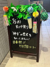 カウンター前のコーナーでは図書館所蔵の「祭事」「風習」にちなんだ本を集めました。